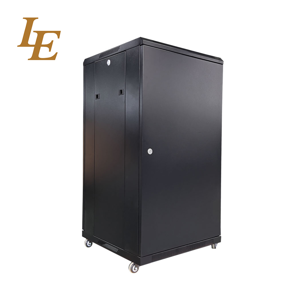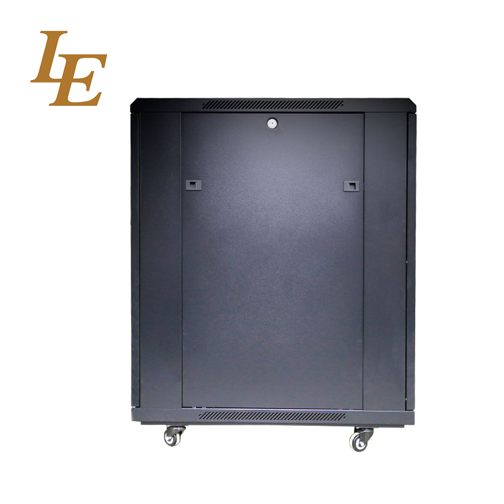 19Inch 18U 800mm Width 22U 600mm Width Tempered Glass Front Door and Solid Metal Rear Door with Handle Locks Racks RAL9004 Black RAL9005 Black Flat Packing