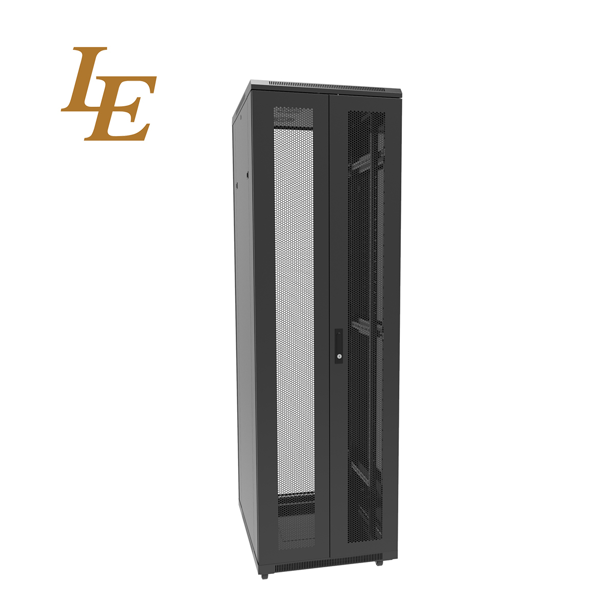 19" Standard Dual-open Vented Door with Handle Locks 42U 600mm 800mm Width 600mm-1200mm Depth RAL9004 Black Complay ANS/EIA RS-310-D, IEC297-2, DIN41497 PART 1, DIN41494 PART 7, GB/T3047.0-92 Standard